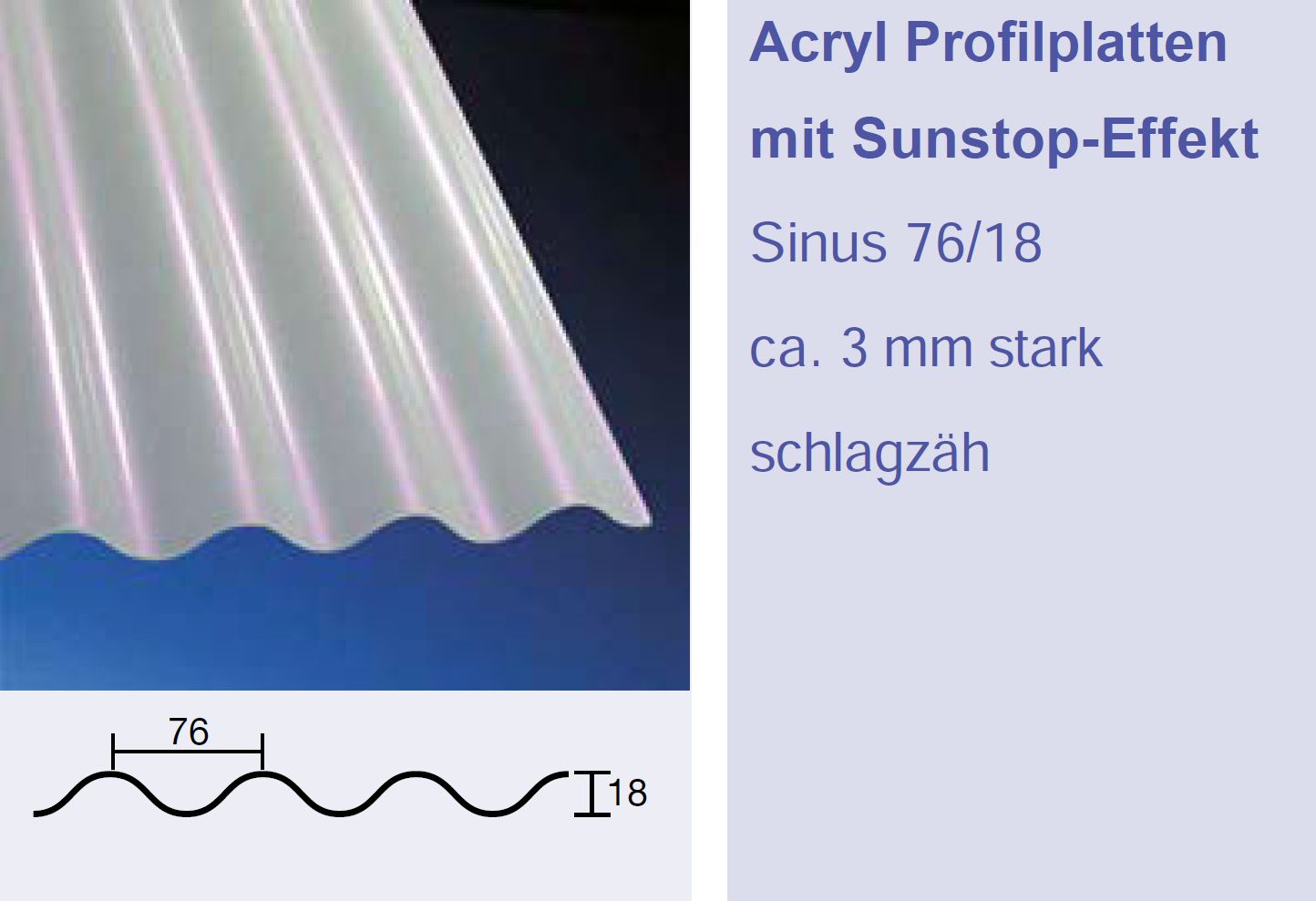 | Produkt | 3mm ACRYLGLAS-Wellplatten 76/18 SINUS |