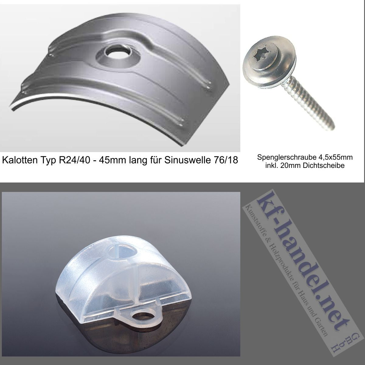 Kalotten-Abstandhalter-Set mit 4,5x55mm Spenglerschrauben - Perfekt für Sinusprofil 76/18